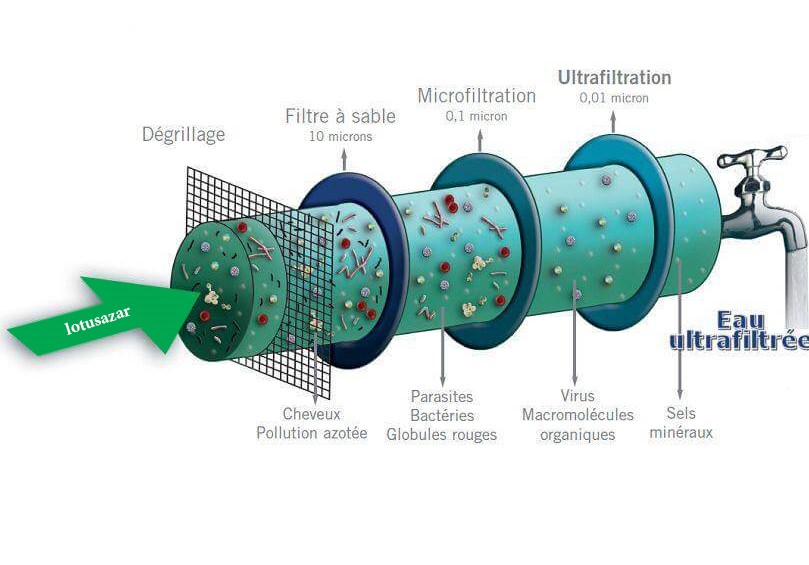 فیلتراسیون در صنعت تصفیه آب کمک میکنند تا ماسهها و جلبکها را از آب دریاچه، آب زیرزمینی، آب دریا و غیره حذف شوند. این فیلترها میتوانند به عنوان پیش فیلتر برای سیستم غشایی عمل کنند، فیلتراسیون آب خنک کننده در سیستم تهویه مطبوع، فیلتراسیون آب در گردش خنک کنندهها، فیلتراسیون رزین تبادل یونی، فیلتراسیون آب گردشی در فرآیند ذوب، کک کردن، نورد، فرآیند ریخته گری با هدف محافظت از نازلهای اسپری و قالبها و استفاده مجدد از آب بازیافتی.